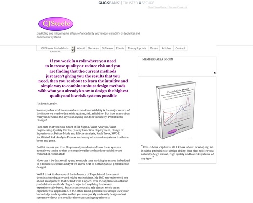 So download the e-book now and learn the key to robust design that you just won’t learn anywhere else. You can learn from my experiences teaching and practicing probabilistic design to improve quality and risk in systems that are affected by random variability.